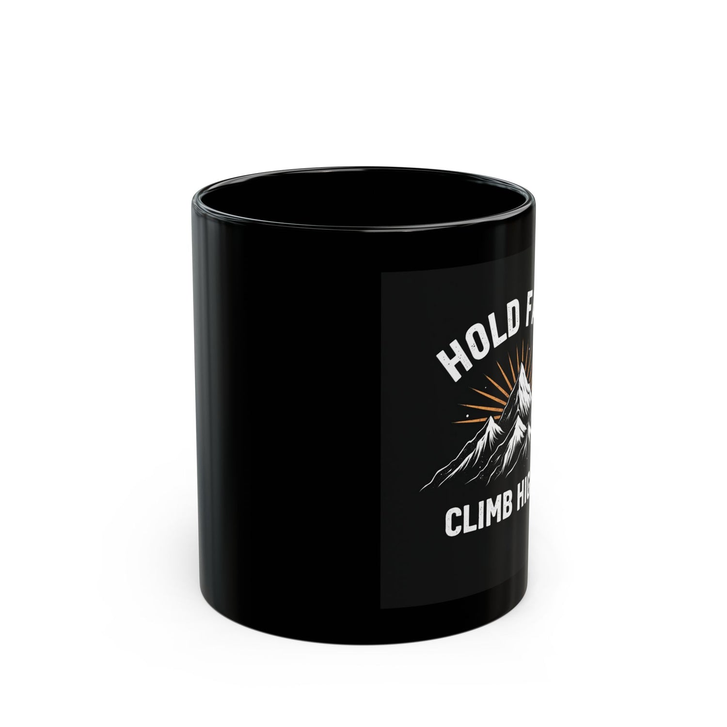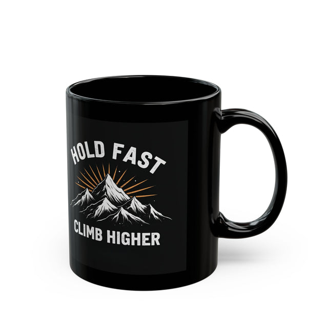 Hold Fast Climb Higher. Black Mug (11oz) - 11oz is backordered and will ship as soon as it is back in stock.