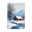 Winter Cabin Canvas Print — Snowy Stream Landscape Matte Stretched Wall Art